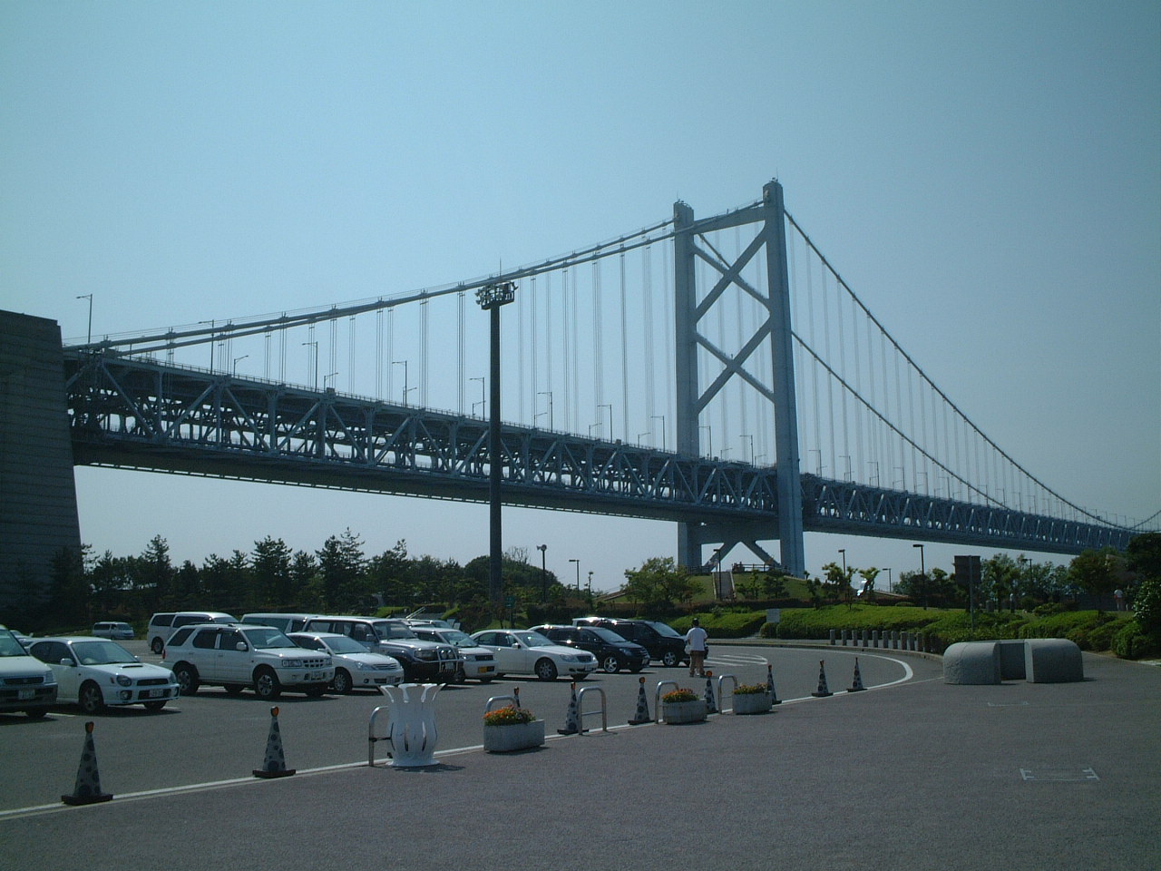 瀬戸大橋の途中にある「与島PA」による。下からのアングルで橋が良く見える。